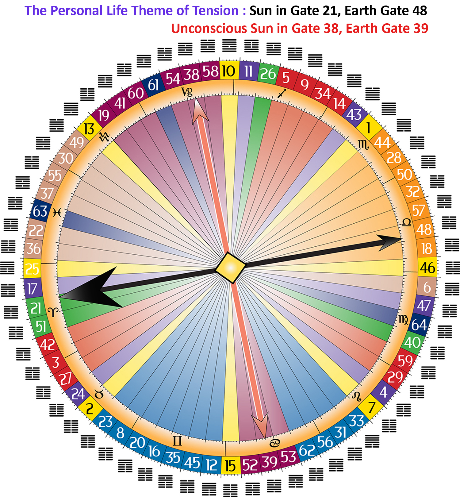 With the Conscious Sun in Gate 21, we find ourselves in the Personal Life Theme of “Tension”. So, Gate 21 is Control. It wants to be able to maneuver things around at will. On the Earth side, we have Gate 48, the “Well”, the “Water source”. It’s a Gateway of knowledge, specifically the knowledge we share with each other in order to lift up our quality of life.